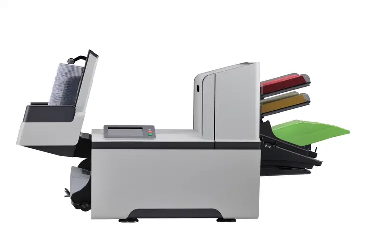 Mit der Kuvertiermaschine FPi 5700 falzen Sie bis zu zehn Blatt Papier gleichzeitig – und Sie kuvertieren bis zu 4.000 Briefe pro Stunde. Innerhalb eines Monats verarbeitet das System, das auf Kuverts der Formate C6, DL, C5/6 und C5 ausgerichtet ist, bis zu 60.000 Briefe.