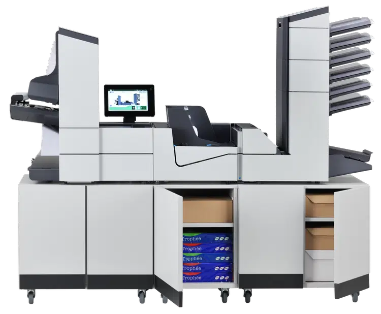Das Hochleistungs-Kuvertiersystem FPi 6700 macht ordentlich Tempo und bietet Ihnen vom Maxi-Feeder bis zur Bandablage viele Ergänzungsmöglichkeiten. Es verarbeitet bis zu 4.300 Briefe pro Stunde und ist für die Formate C6, DL, C5/6 oder C5 geeignet.