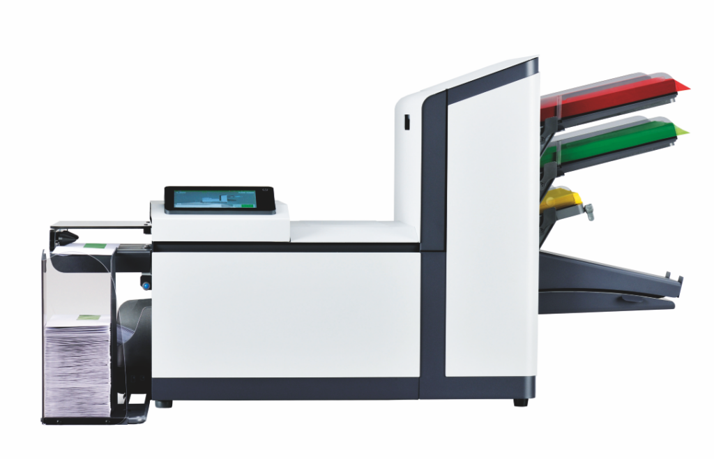 Das Kuvertiersystem kann gleichzeitig bis zu zehn Blatt à 80 g/qm falzen. Von der Dokumentenzuführung bis hin zu Briefablage ist die FPi 6700 konsequent auf die Verarbeitung großer Briefvolumen ausgerichtet.